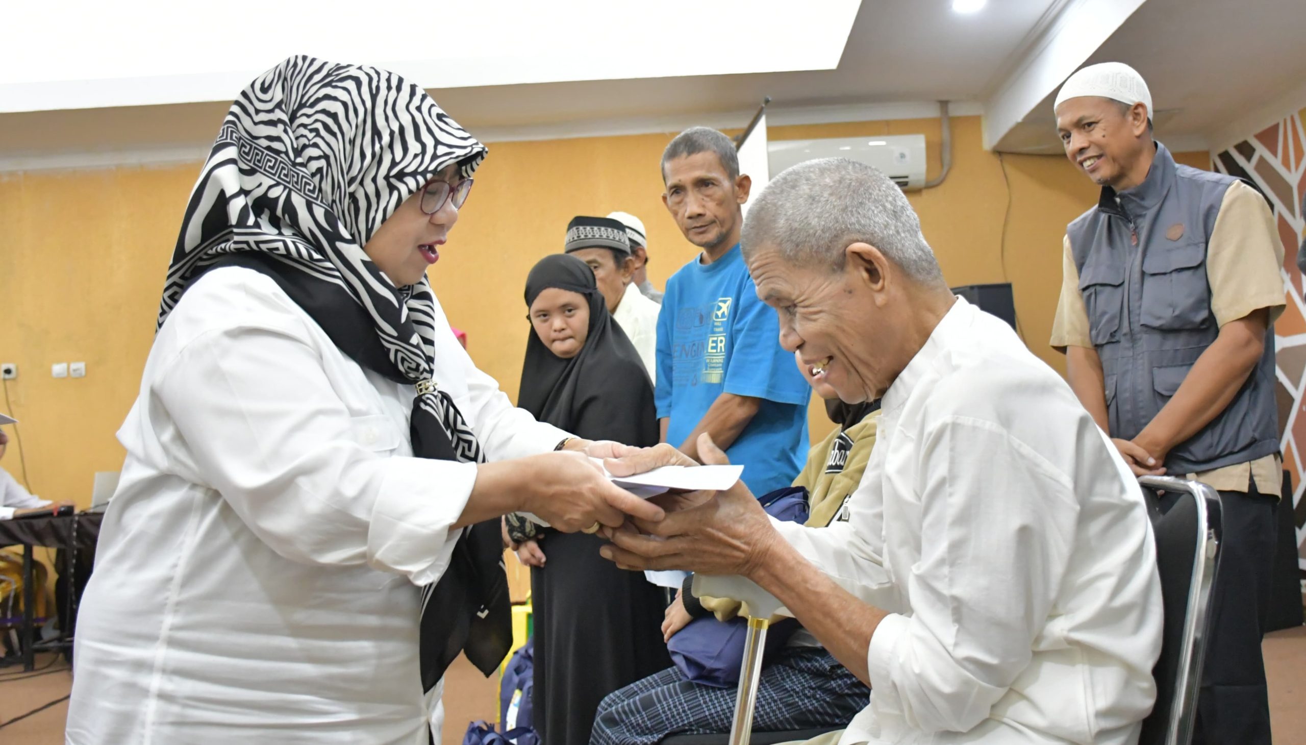 Kegiatan ini diisi dengan penyerahan bantuan berupa uang santunan, sembako, bingkisan dan kelengkapan ibadah kepada penerima manfaat yang terdiri dari jompo/lansia, marbot mesjid, disabilitas, stunting dan anak yatim