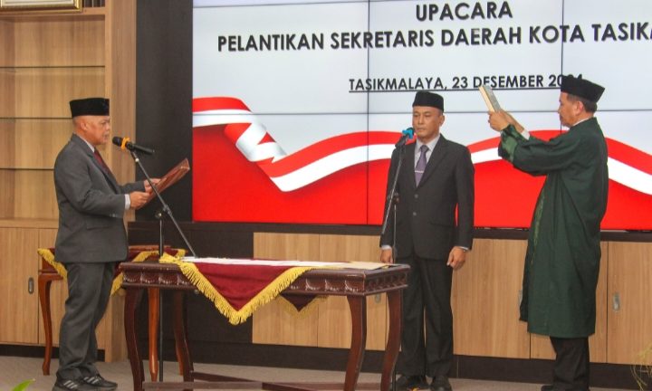 Tasikmalaya, Fokus9.com_Pj Walikota Tasikmalaya Asep Sukmana melantik Asep Goparullah sebagai Sekretaris Daerah Kota Tasikmalaya di Aula Kantor Balekota Tasikmalaya, senin (23/12/2024).